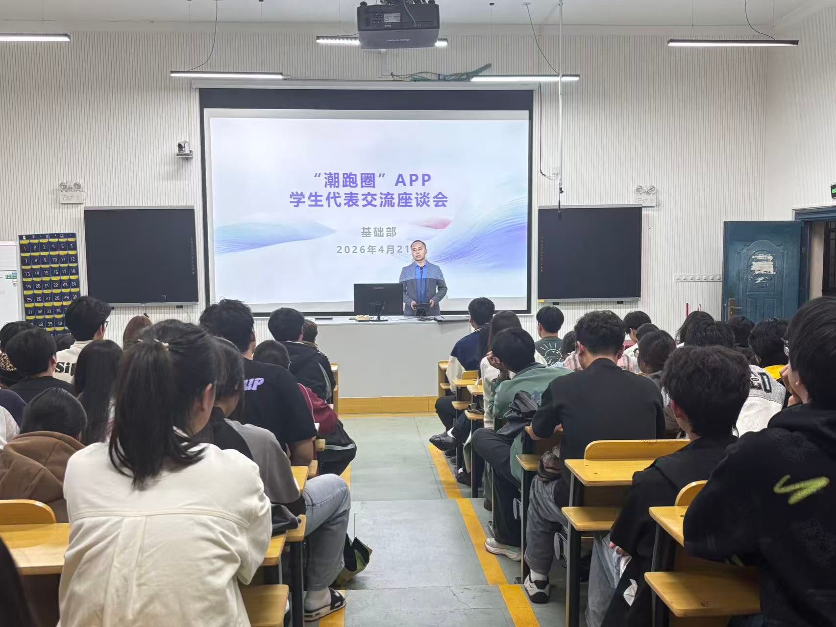 为进一步推广校园健康跑运动,畅通师生沟通渠道,优化“潮跑圈”APP使用体验,切实发挥体育委员桥梁纽带与示范引领作用,4月21日,基础部在第二多媒体教室组织召开校园健康跑暨“潮跑圈”APP学生代表座谈会。学院党委副书记、院长许振华出席会议并讲话,基础部管理人员、各二级学院体育委员代表参加会议。