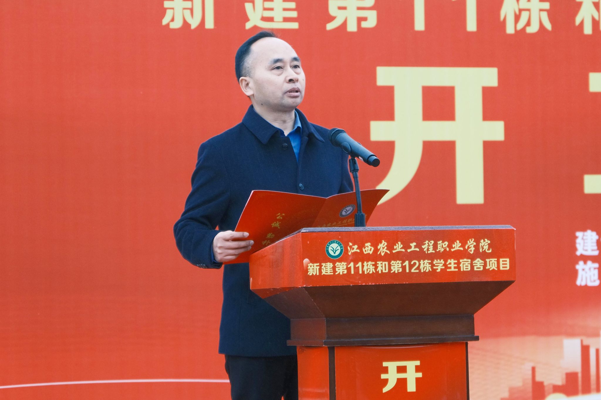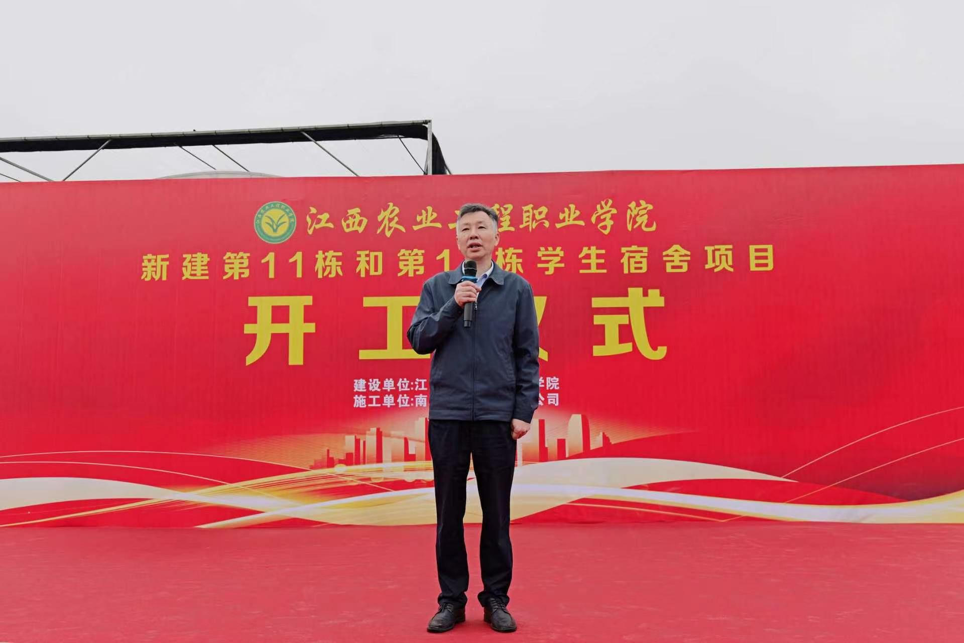 学院党委副书记、院长许振华在仪式上致辞,他指出,新建学生宿舍项目是学院完善办学条件、提升育人环境的重要举措,对保障学生生活需求、推动学院高质量发展具有重要意义。他希望各参建单位严守安全底线、严把工程质量、加快建设进度,全力打造优质工程、放心工程。