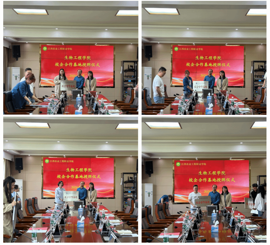 座谈会上,校企双方紧紧围绕农业行业的发展、市场变化、人才需求等进行热烈的交流。双方就如何进一步优化人才培养方案、共建共享实习实训基地、推进“订单式”培养、探索现代学徒制、开展横向技术研发合作、促进师资双向交流等方面进行了深度探讨。会场气氛活跃,互动频繁,在课程设置、职业素养的培养、师资共育等方面达成了一些共识。为进一步深化校企合作实效,座谈结束后进行了“校企合作基地”授牌仪式。